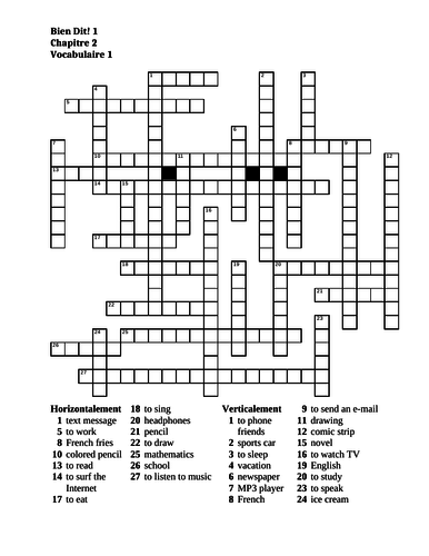 Bien Dit 1 Chapitre 2 Vocabulaire 1 Crossword Teaching Resources