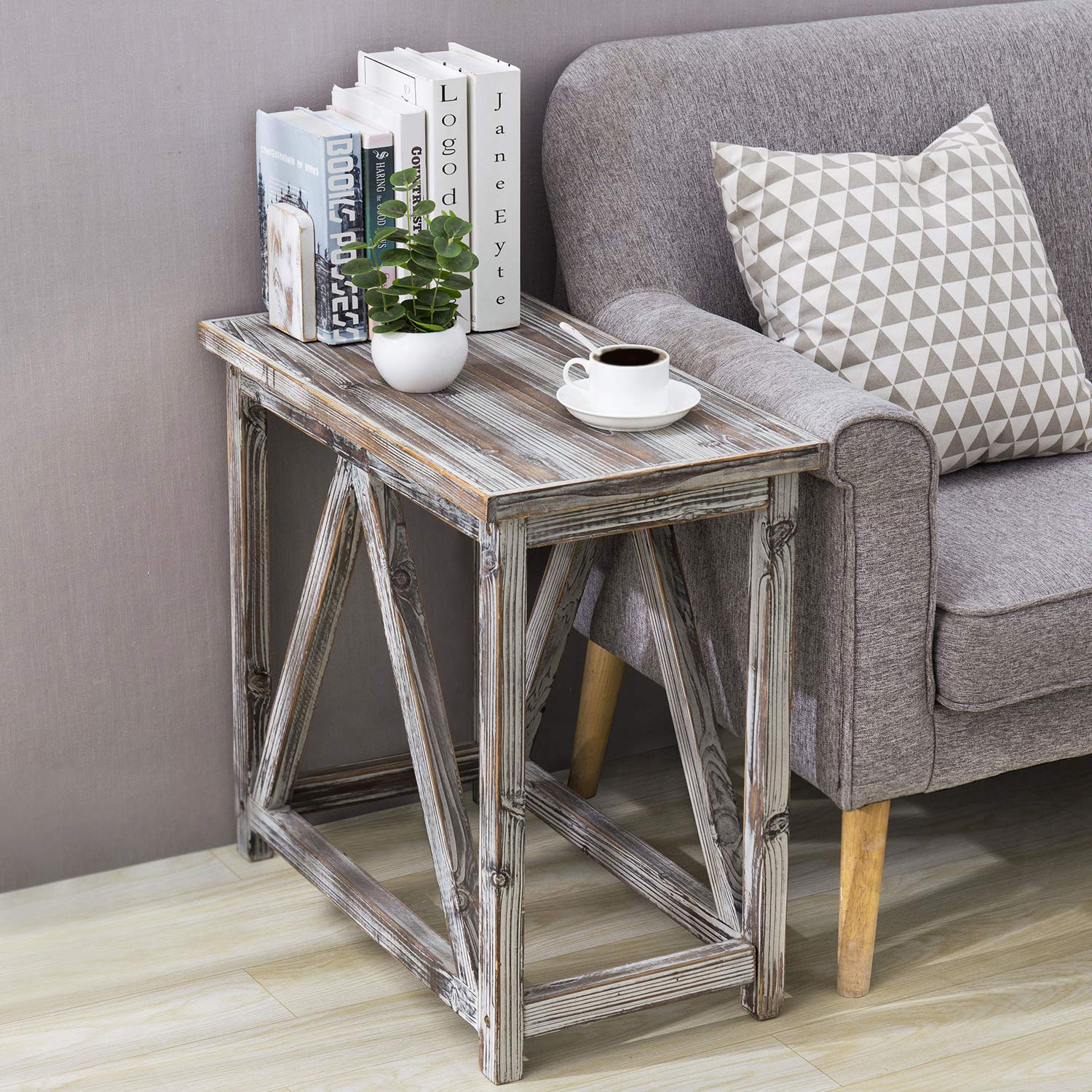 Amazon Com Mygift Rustic Torched Wood Farmhouse End Table Rectangular Accent Sofa Side Table 26 X 14 Inch Small Nightstand Home Kitchen